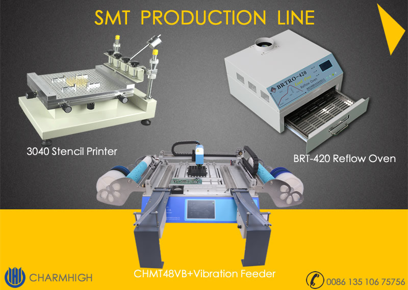 Stencil Printer 3040 / CHMT48VB+ Vibration Feeder, SMT assembly Line / Reflow Oven BRT-420